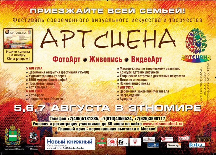 artscenafest@mail.ru (в теме письма «Арт Ярмарка», в самом письме: ФИО участников, наименование продукции) или звоните организаторам — телефоны указаны ниже.
